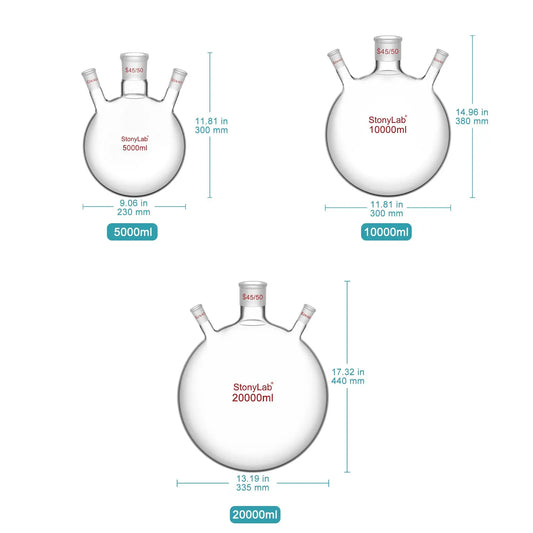 3-Neck Round Bottom Flask, 45/50 Center and two 24/40 Side Joints, 5-20 L