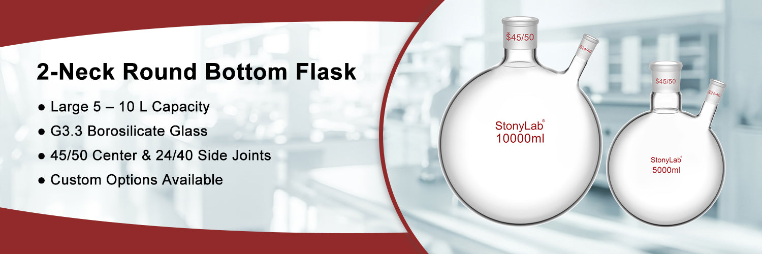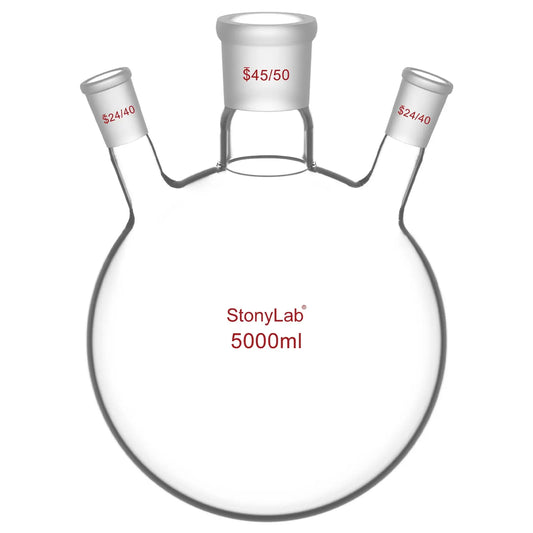 3-Neck Round Bottom Flask, 45/50 Center and two 24/40 Side Joints, 5-10 L