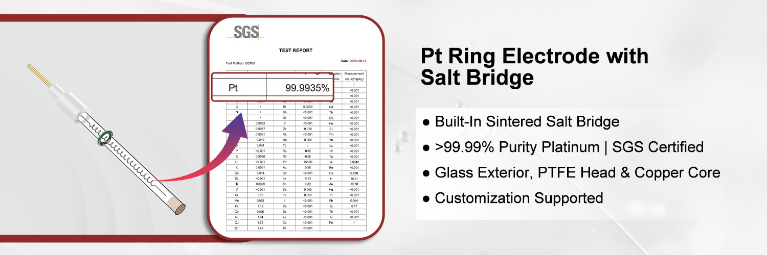 Platinum Ring Electrode with Salt Bridge, 0.5x150 mm, 99.99% Purity, SGS Certified - GDMS Tested