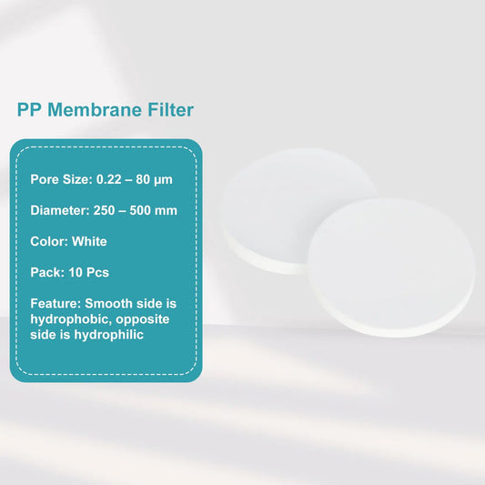 PP Membrane Filters, 0.22-80 Micrometer Pore Size, 250mm - 550mm Diameter, Pack of 10 Sheets