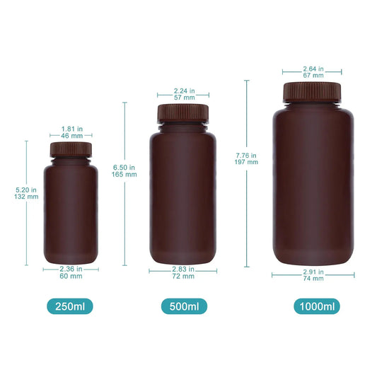 PP Amber Wide Mouth Reagent Bottle, 2 Pack, 250-1000 ml