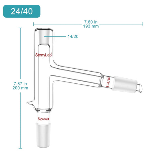 75 Degree Distillation Head with Vacuum Jacket, 24/40 Lower and Side Ports, 14/20 Upper Port