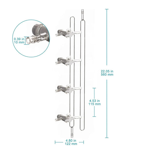 4 Ports Vacuum Gas Dual Bank Manifold with PTFE Stopcocks