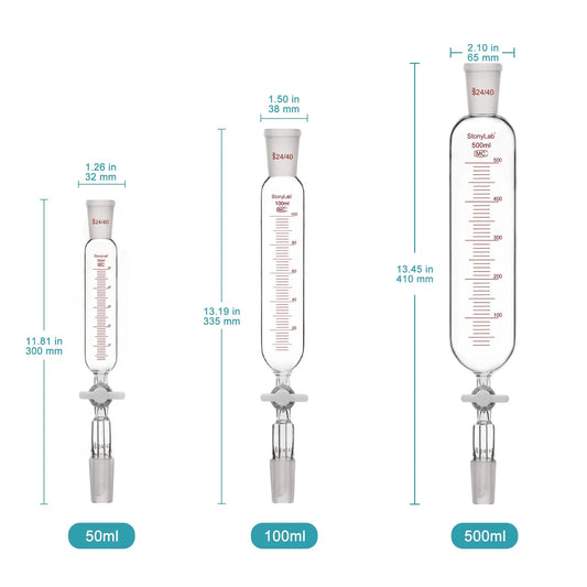 Addition Funnel, 24/40 Joint, PTFE Stopcock, 50-500 ml