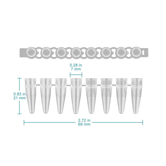 8-Strip PCR Tubes, 0.2ml Thin-Wall Flat Cap, Transparent, 200 Pack