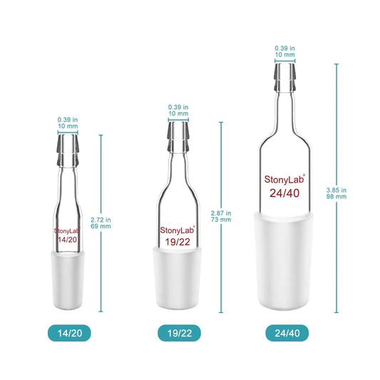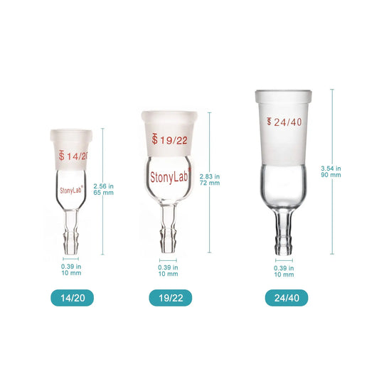 Straight Inlet Adapter with a 10mm Hose Connection and Male Joint, Joint: 14/20, 19/22, 24/40, Length: 30-90mm