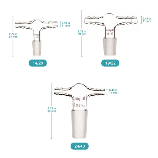 T-Shape Dual Hose Vacuum/Inert Gas Inlet Adapter with Dual 3/8 inch Hose Connections