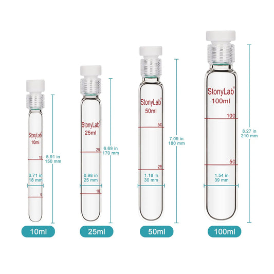 Borosilicate Glass Reusable Graduated Test Tubes with PTFE Screw Cap