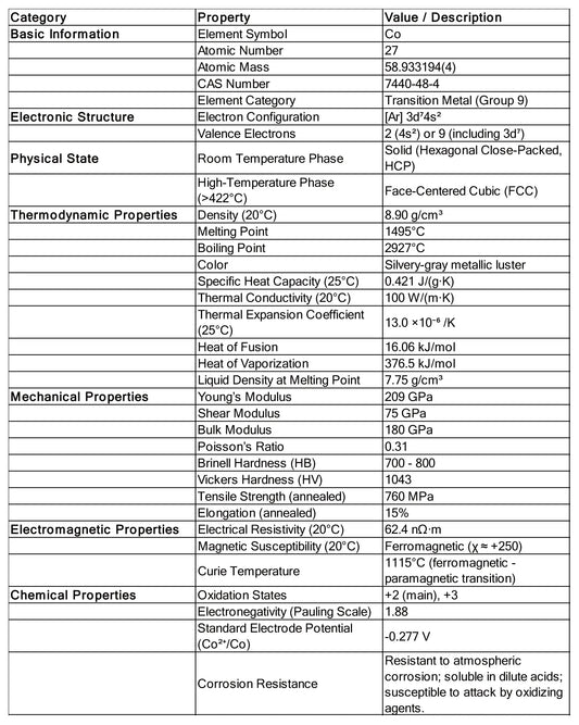 Cobalt (Co) Sputtering Target, 99.95% Purity
