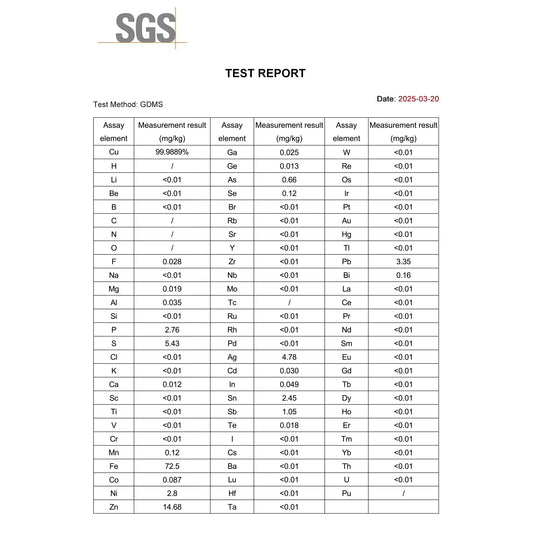 Copper Sheet Electrode, 10x10x0.1 mm, SGS Certified - GDMS Tested