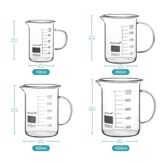 Graduated Glass Beaker with Handle, 100-1000 ml