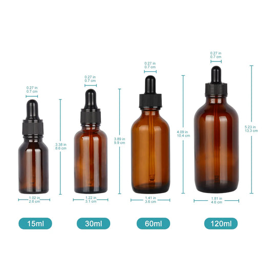 Amber Dropper Bottle, Glass Dropper with Inner Plug and Label, 15-120 ml