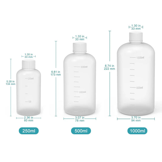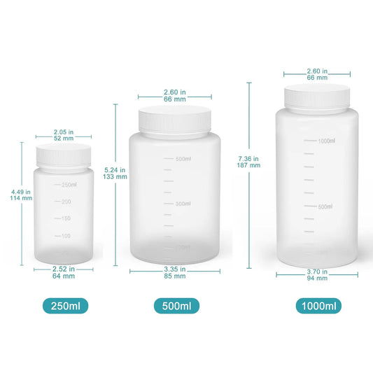 HDPE Wide Mouth Reagent Bottle, 2 Pack, 250-1000 ml