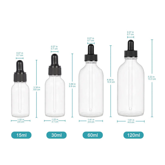 Transparent Dropper Bottle, Glass Dropper with Inner Plug and Label, 15-120 ml
