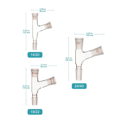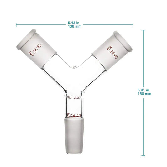 Y-Shaped 3-Way Connection Adapter. One Inner and Two Outer 24/40 Standard Taper Joints