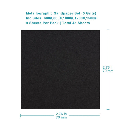 Metallographic Sandpaper Set, 600# to 1500# Grit, 70x70mm, 9 Sheets per Pack