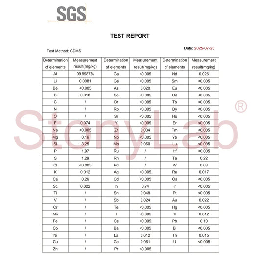 Aluminum Sheets, 10x15x1 mm/100x10x1 mm, >99.99% Purity, SGS Certified - GDMS Tested