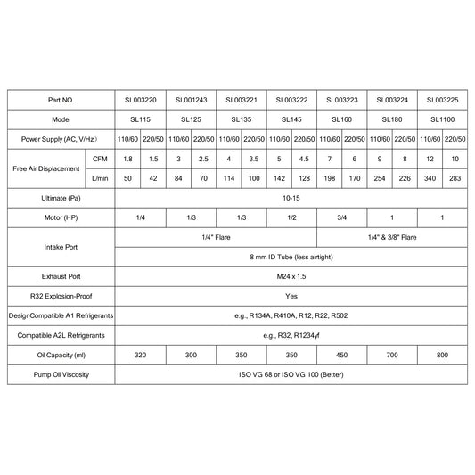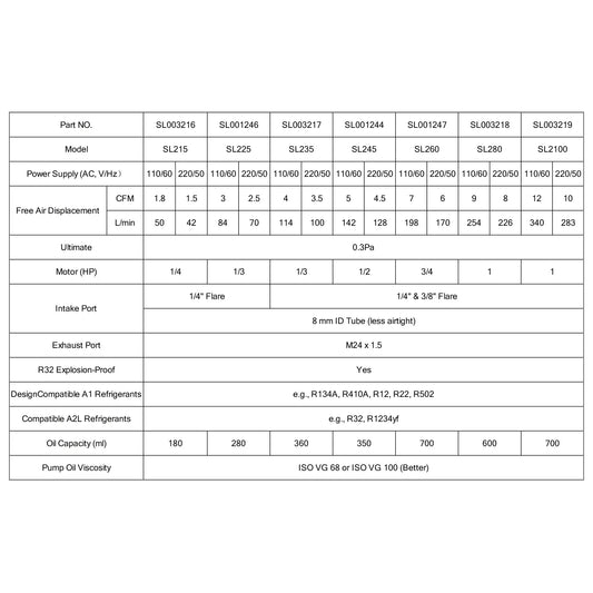 Two-Stage Rotary Vane Vacuum Pump, R32 Explosion-Proof, 0.3 Pa Vacuum, 1.5-12 CFM