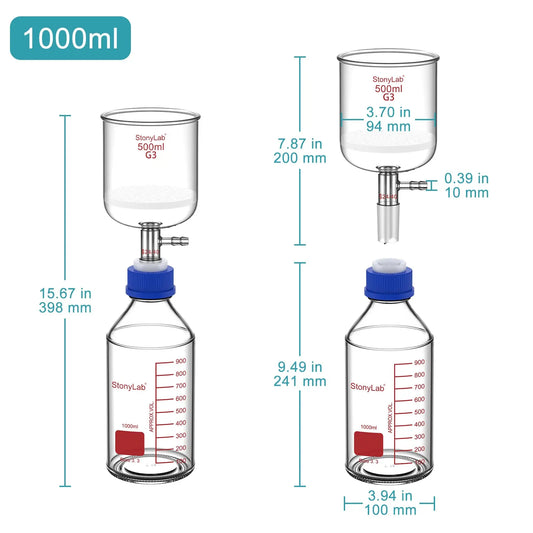 Buchner Funnel Filteration Kit, 500 ml Fine Frit Funnel, 1000 ml Storage Bottle