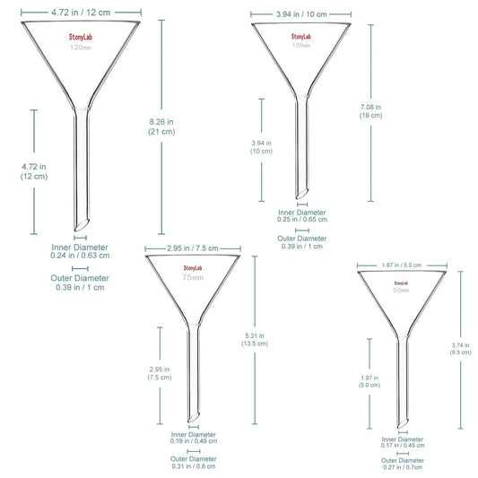 Glass Funnel Set, 4pcs Mixed Sizes Pack