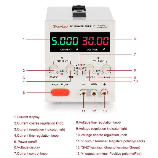 DC Power Supply, 0–30V 0–5A, 1 mA Resolution, Four-Digit Display
