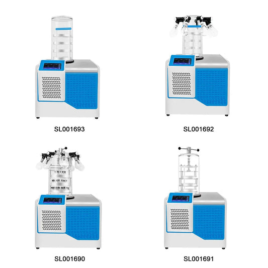 Benchtop Freeze Dryer with Vaccum Pump, -60°C Cold Trap, 0.08-0.12㎡ Drying Area, 4kg/Batch Water Capture Capacity