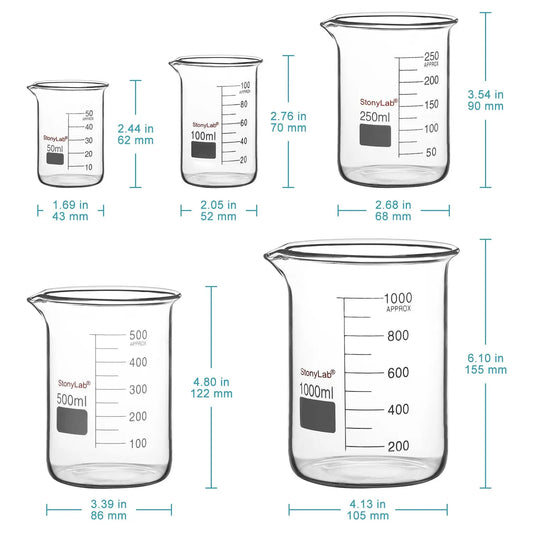 Glass Beaker Set, 5 Pack, 50/100/250/500/1000ml