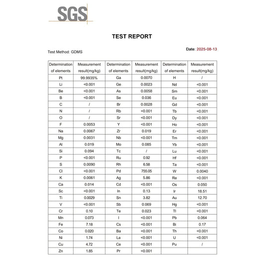 Platinum Sheet Electrode, 10x10x0.1 mm/10x15x0.1 mm/15x15x0.1 mm, >99.99% Purity, SGS Certified - GDMS Tested