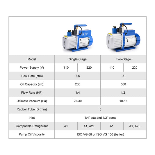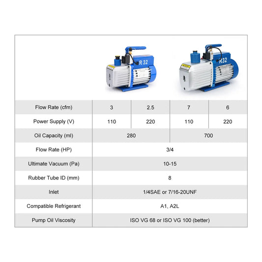 Two-Stage Rotary Vane Vacuum Pump, R32 Explosion-Proof, 10-15 Pa Vacuum, 2.5-7 CFM