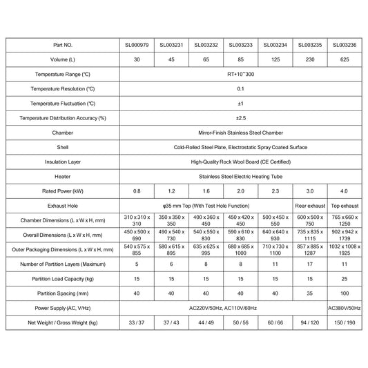 Forced Air Convection Drying Oven, 30-625 L, RT+10Β°C-300Β°C