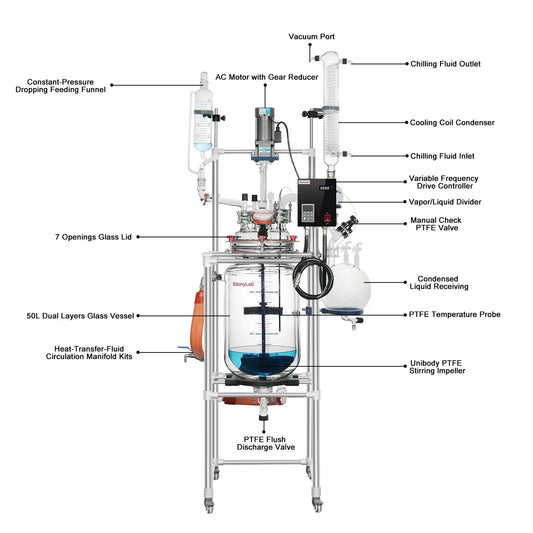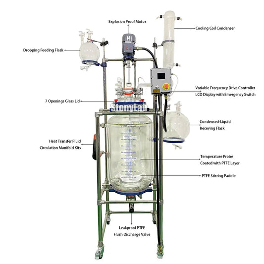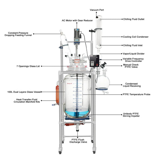 Single or Dual Jacketed Glass Reactor, 100L Explosion-Proof Motor & Controller