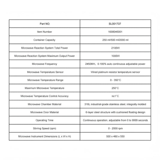 Microwave Chemical Synthesizer with Magnetic Stirring and UV, 2450 MHz, 0-100% Continuous Power Adjustment, Max.250°C