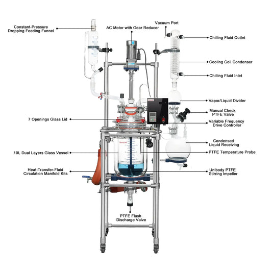 Single or Dual Jacketed Reactor Systems, Glass Reactor 10L