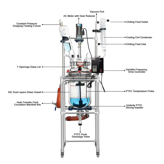 Single or Dual Jacketed Reactor Systems, Glass Reactor 20L