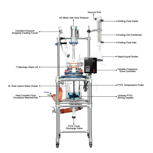Single or Dual Jacketed Reactor Systems, Glass Reactor 5L