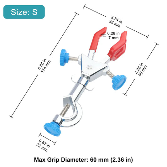 3 Prong Swivel Clamp with Boss Head, Double Adjust