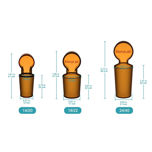 Amber Glass Stoppers, Hex-Head, Hollow