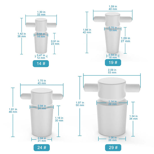 PTFE Stoppers, Handle, 3 Pack