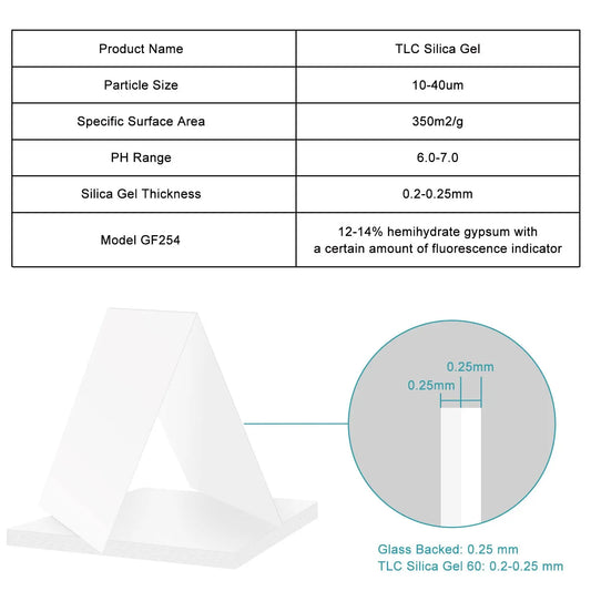 Glass Backed TLC Classical Silica Gel Plate, 2.5 x 7.5 cm, 80 Pack