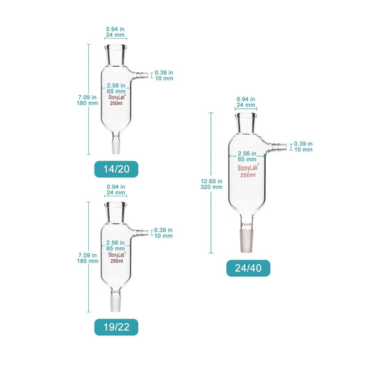 Glass Distilling Receiver, Distillation Adapter with Four 24/40 Joints, and Hose Connection