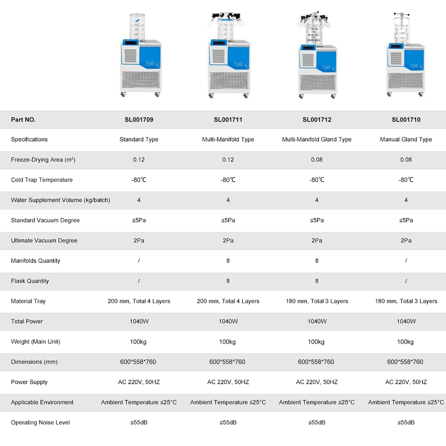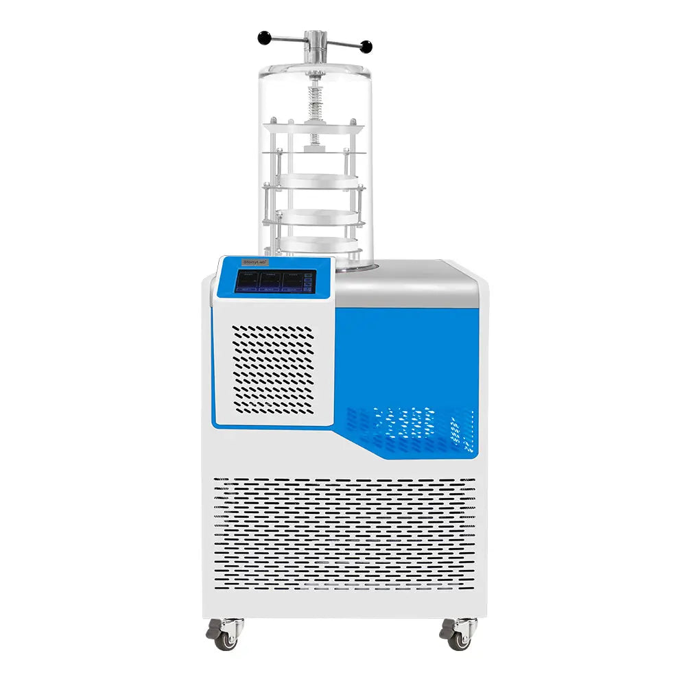 Vertical Freeze Dryer with Vacuum Pump, -80°C Cold Trap, 0.08-0.12㎡ Drying Area, 4kg/Batch Water Capture Capacity
