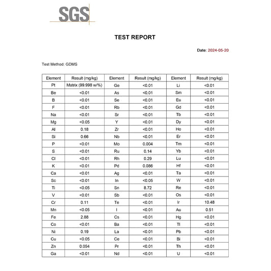 Platinum Sheet Electrode, 10x10x0.1 mm/10x15x0.1 mm/15x15x0.1 mm, 99.99% Purity, SGS Certified - GDMS Tested