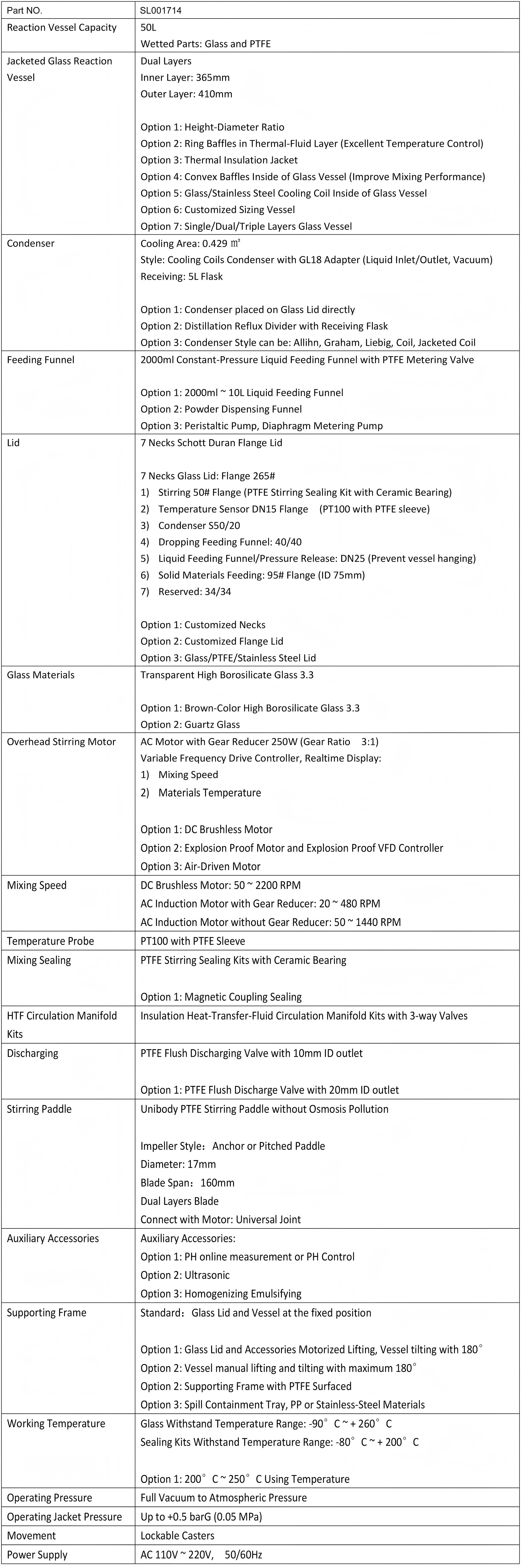 Lifting Rotary Single or Dual Jacketed Glass Reactor Systems, 50L