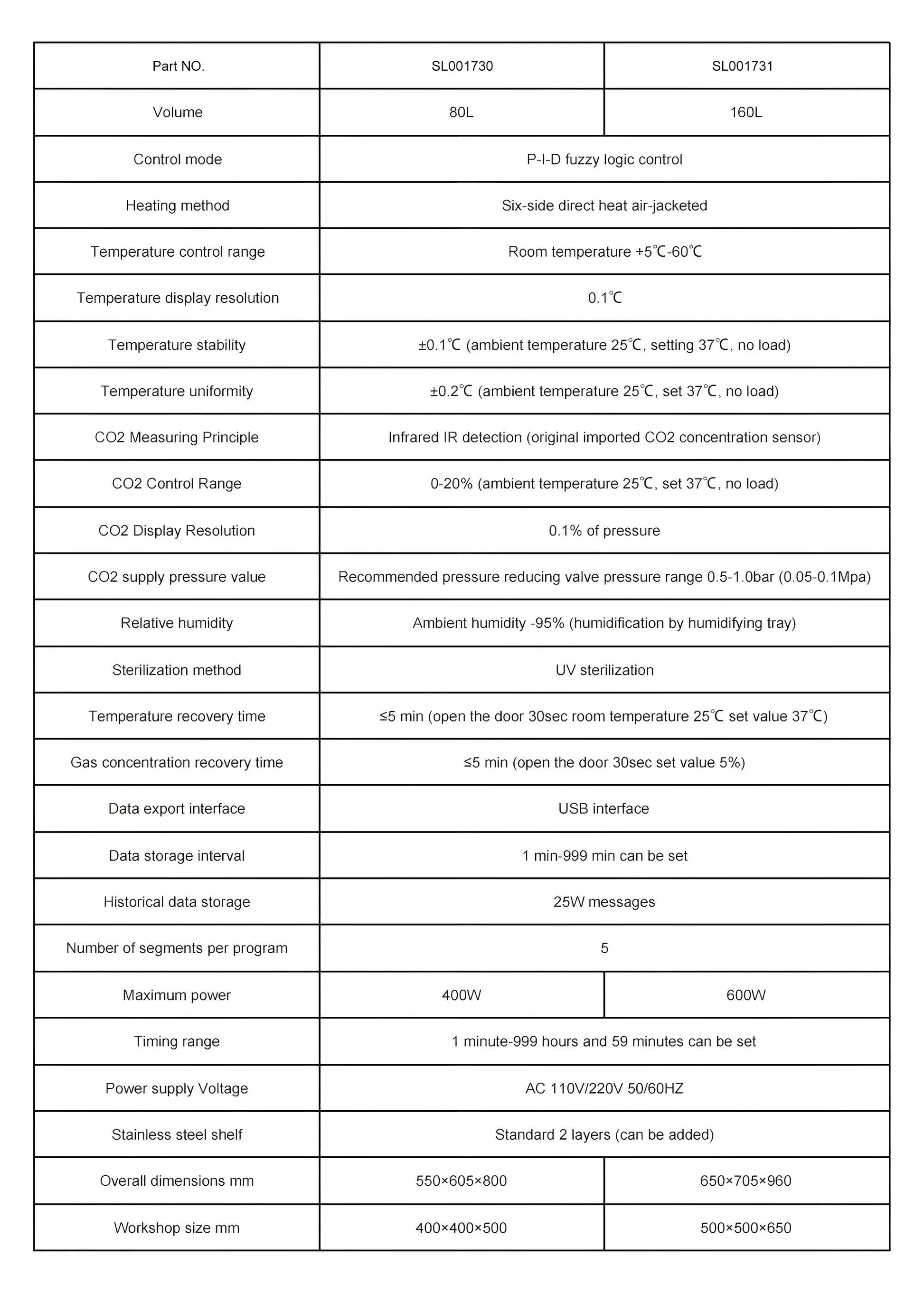 CO2 Microbial Incubator, 80/160L, RT-60°C, CO2 0-20%