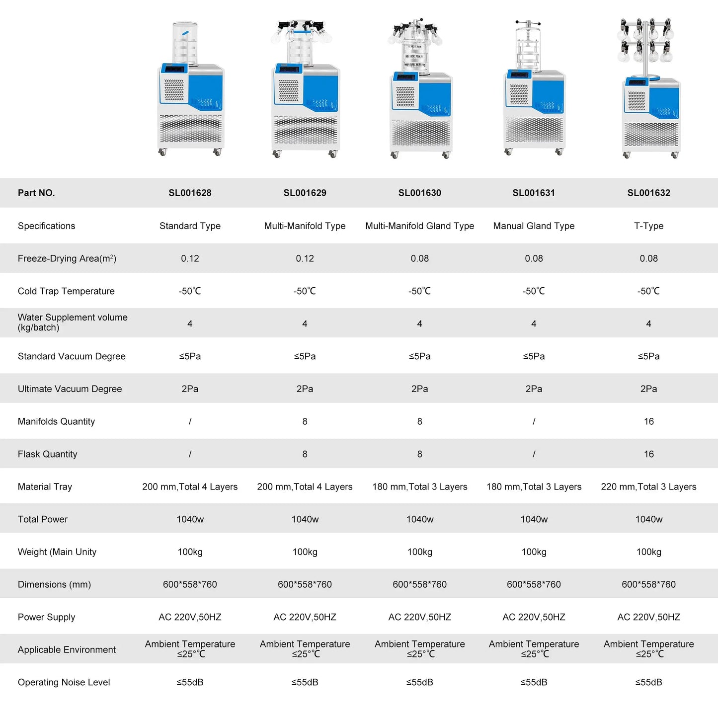 Vertical Freeze Dryer with Vacuum Pump, -60°C Cold Trap, 0.08-0.12㎡ Drying Area, 4kg/Batch Water Capture Capacity