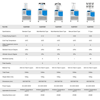 • Freeze Drying Area: 0.08-0.12㎡; Temperature Control: -60°C