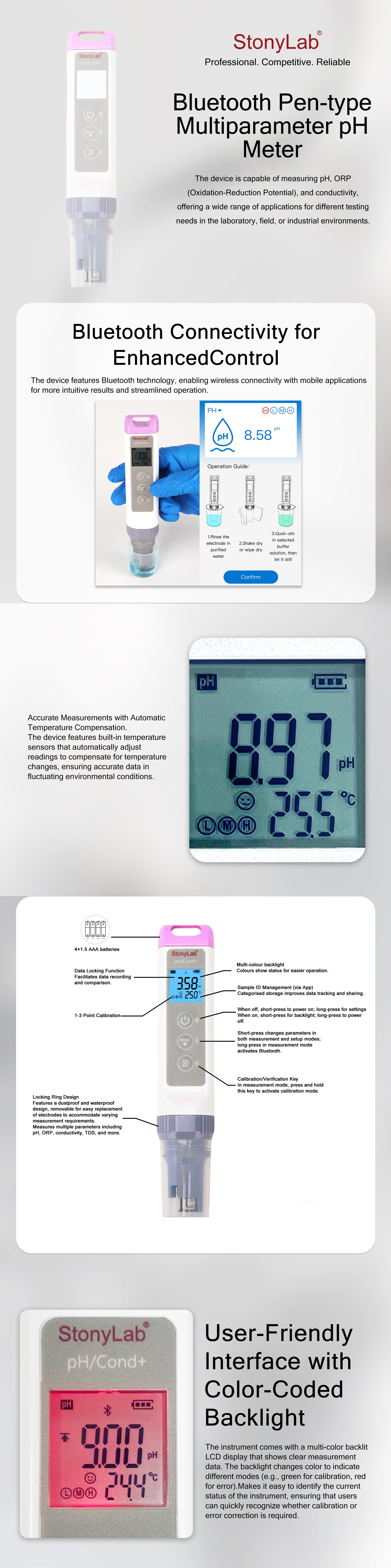 - High-Precision Performance: Features automatic temperature compensation, one-to-three-point pH calibration with global buffer recognition, and a premium platinum conductivity electrode for accurate and stable readings
