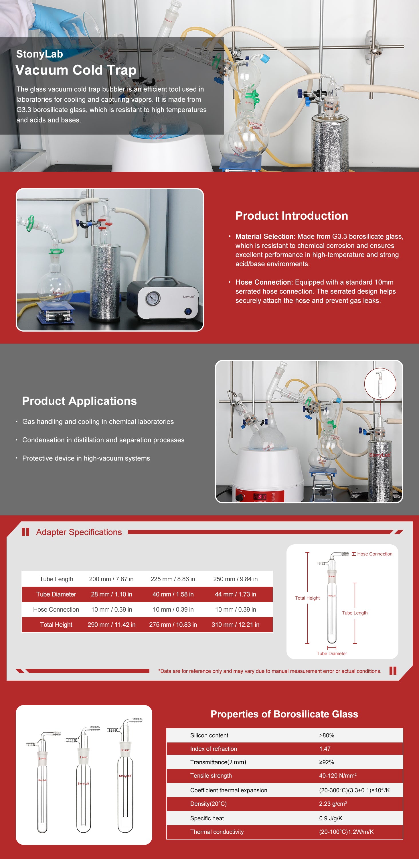 Glass Vacuum Cold Trap Bubblers, 200/225/250 mm