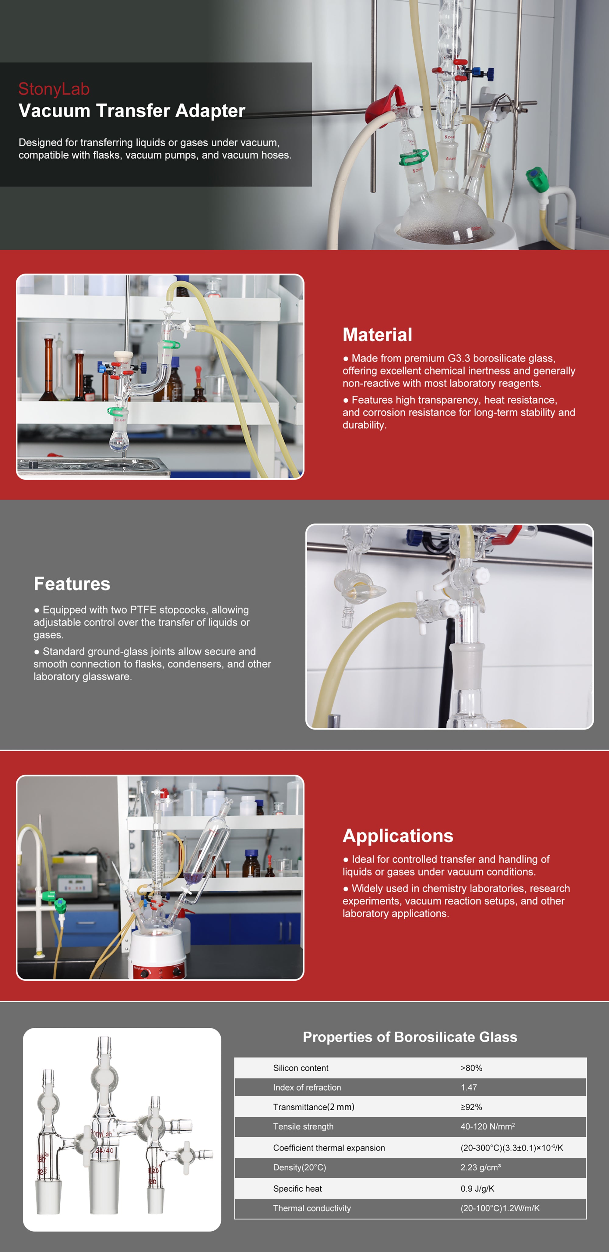 - Used for transferring liquids or gases under vacuum; often works with flasks, vacuum pumps and vacuum rubber tubes for vacuum experiments