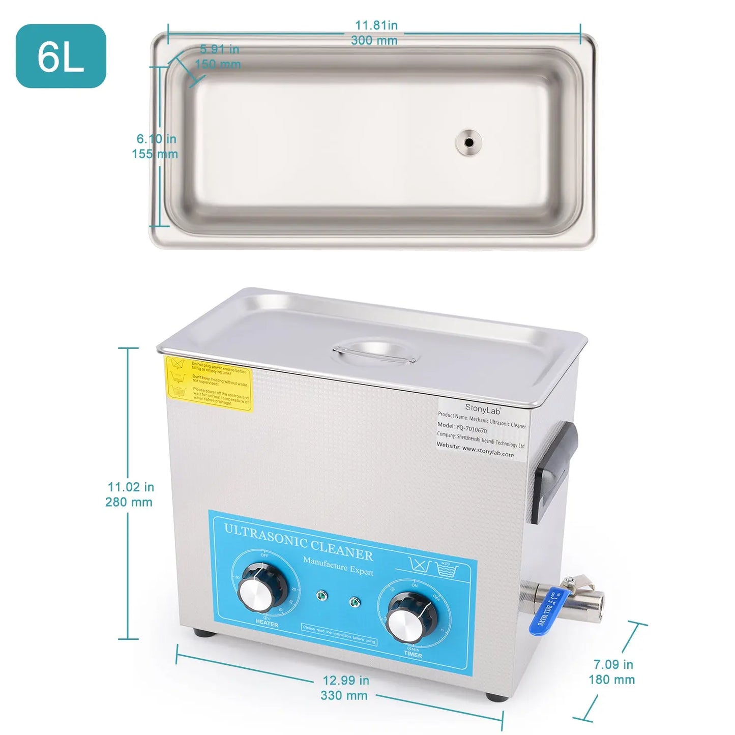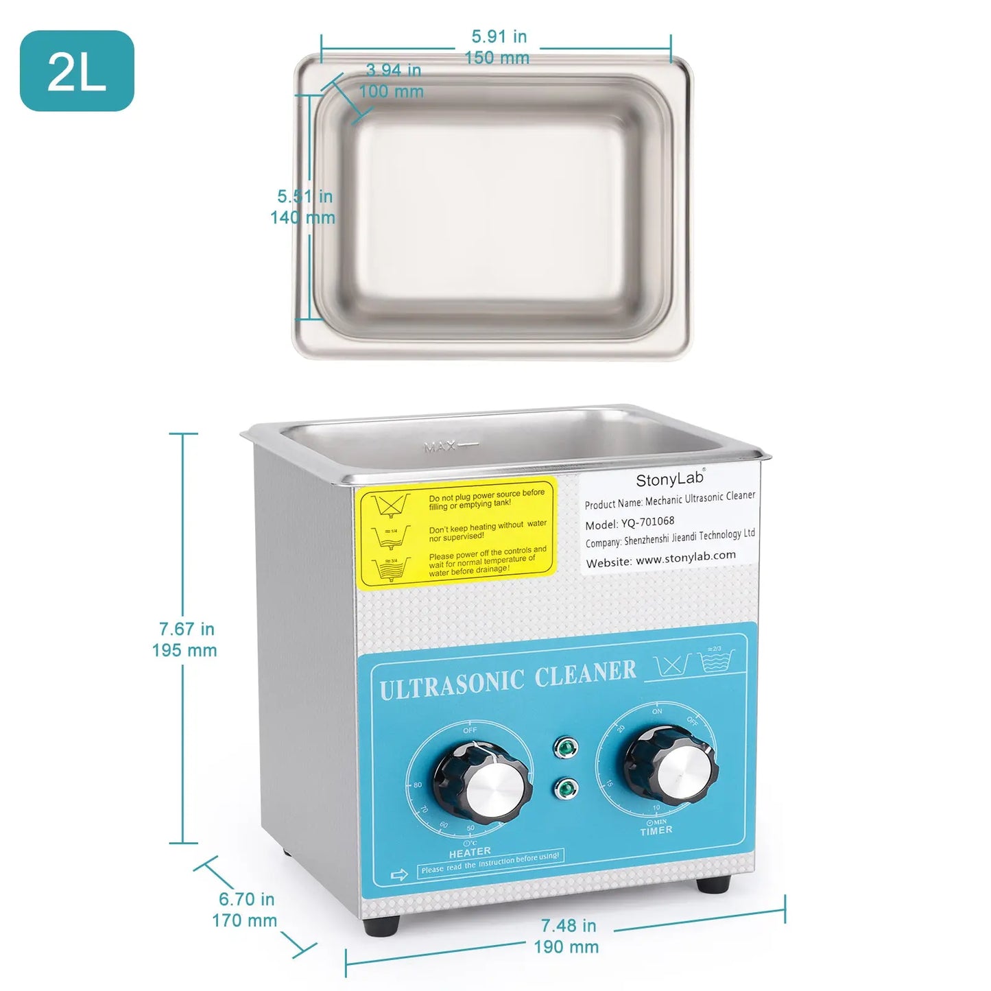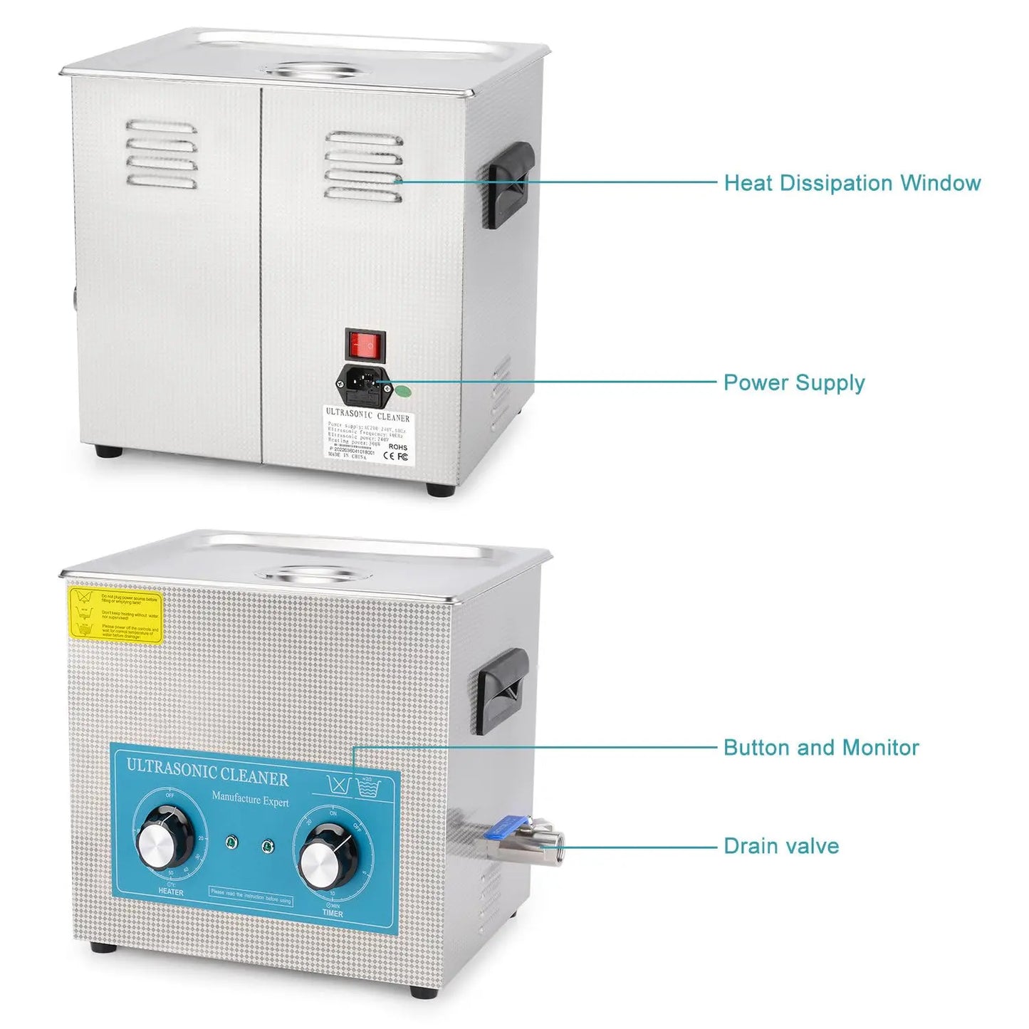 Ultrasonic Cleaner, 2-10L, Knob Control Heating & Timer, 40kHz Lab Cleaner, 304 Stainless Steel